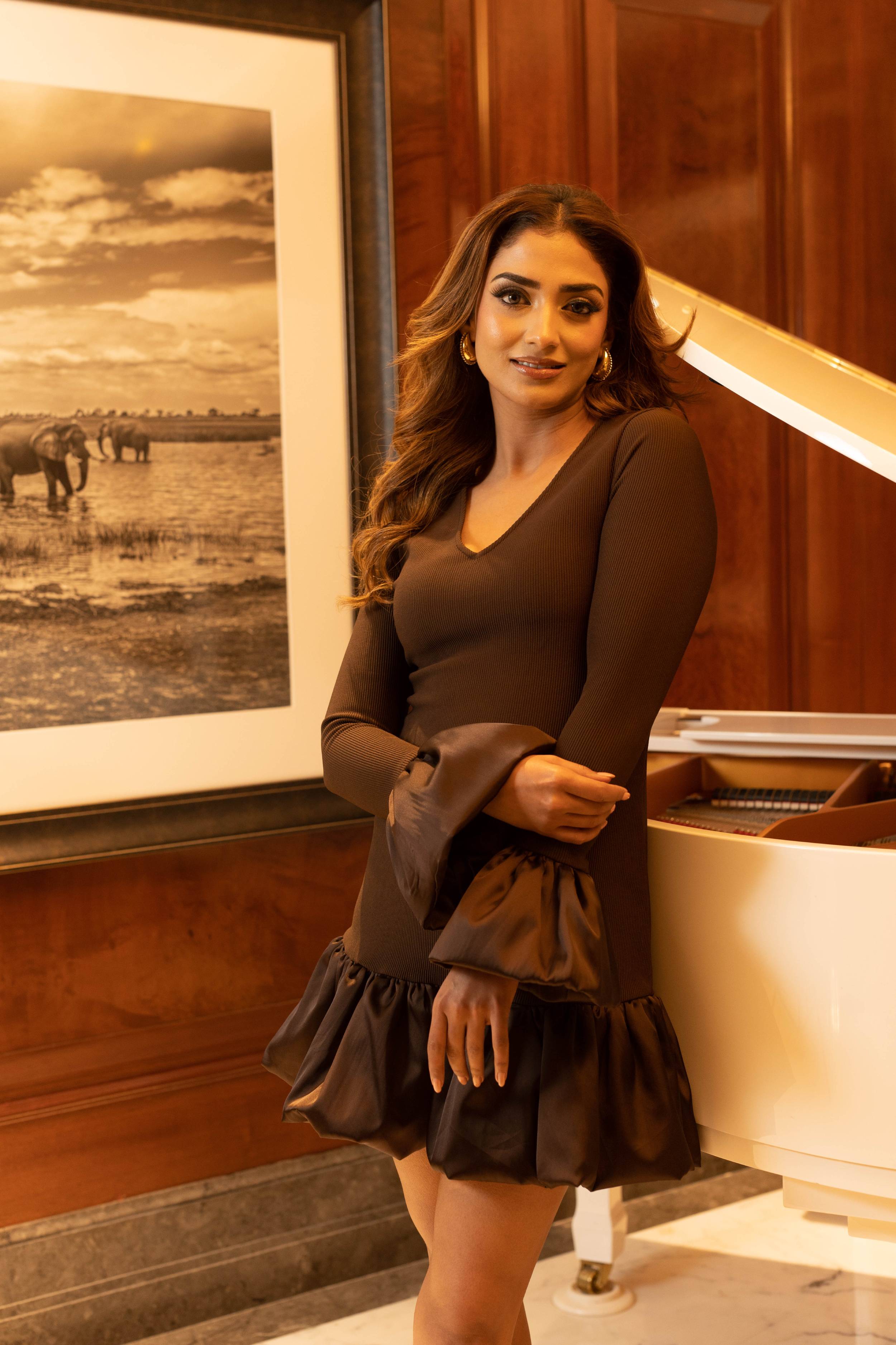 - Shape & Versatility:The long sleeves paired with a mini length craft a balanced silhouette, offering a stylish yet comfortable option that transitions effortlessly from day to night.