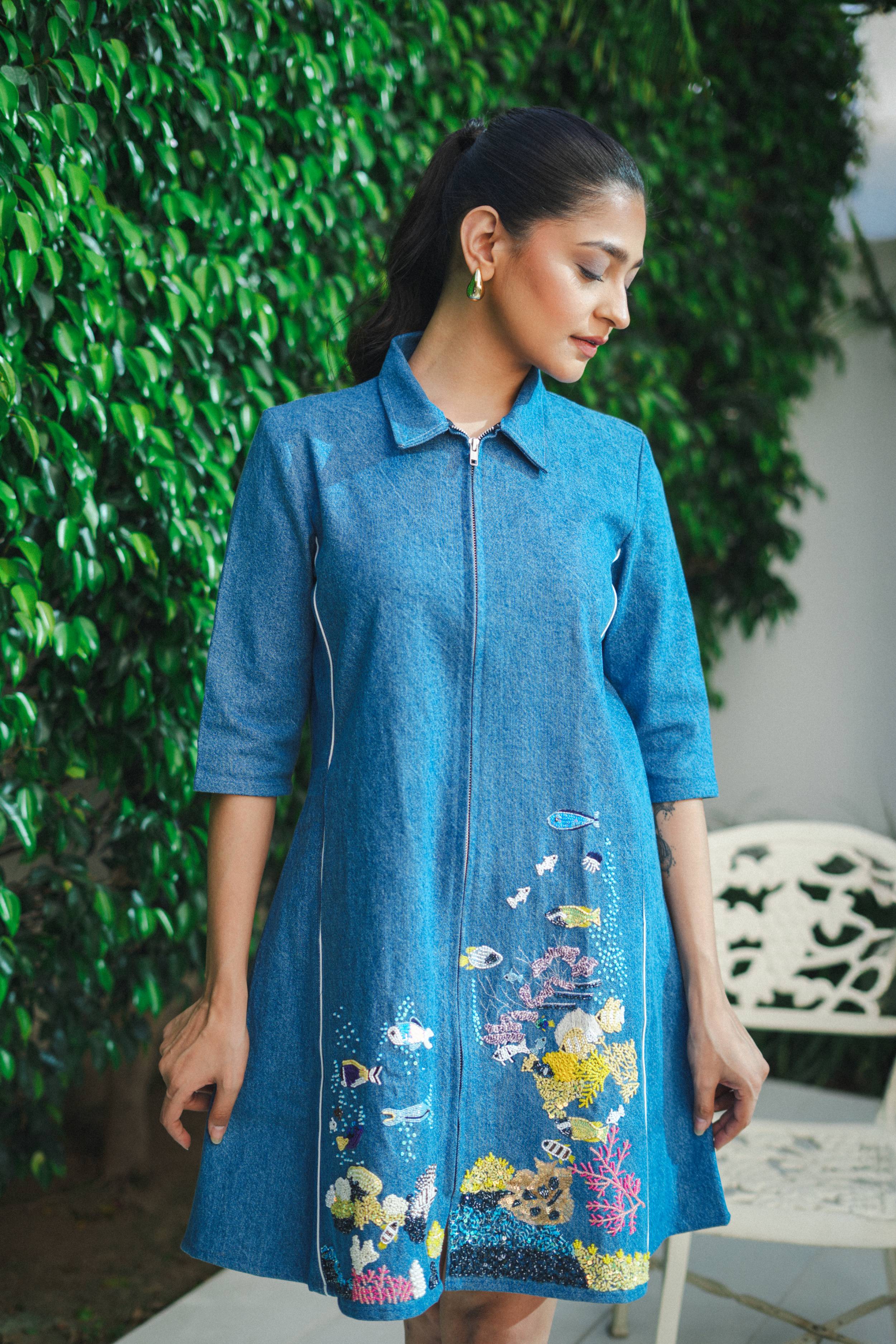 Relaxed yet polished, it moves from weekend markets to rooftop gatherings without effort. Wear it alone with sneakers, belt it for shape, or layer over leggings when the temperature drops. Cool, comfortable, and quietly joyful, this is the denim dress you’ll reach for the moment the sun comes out.