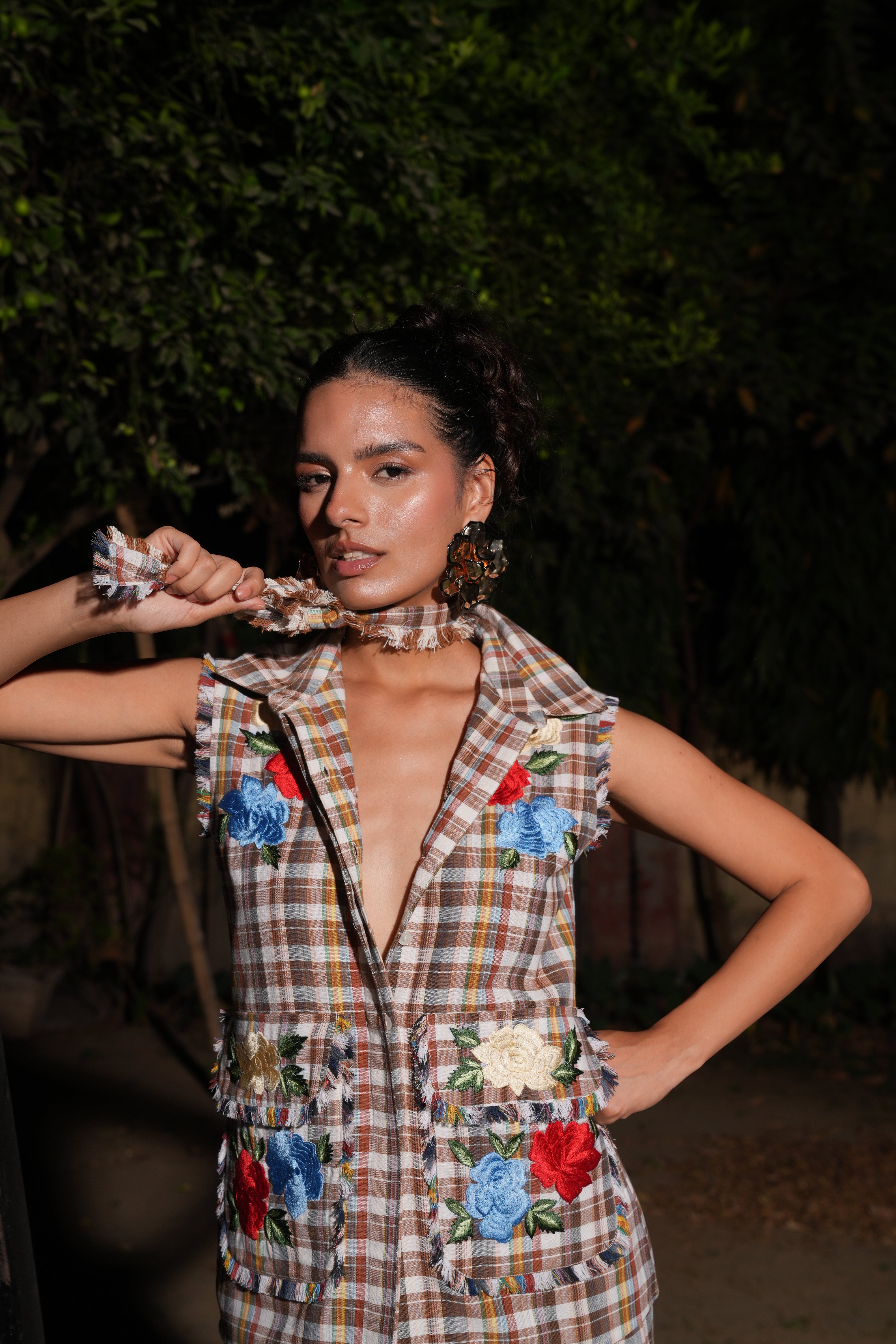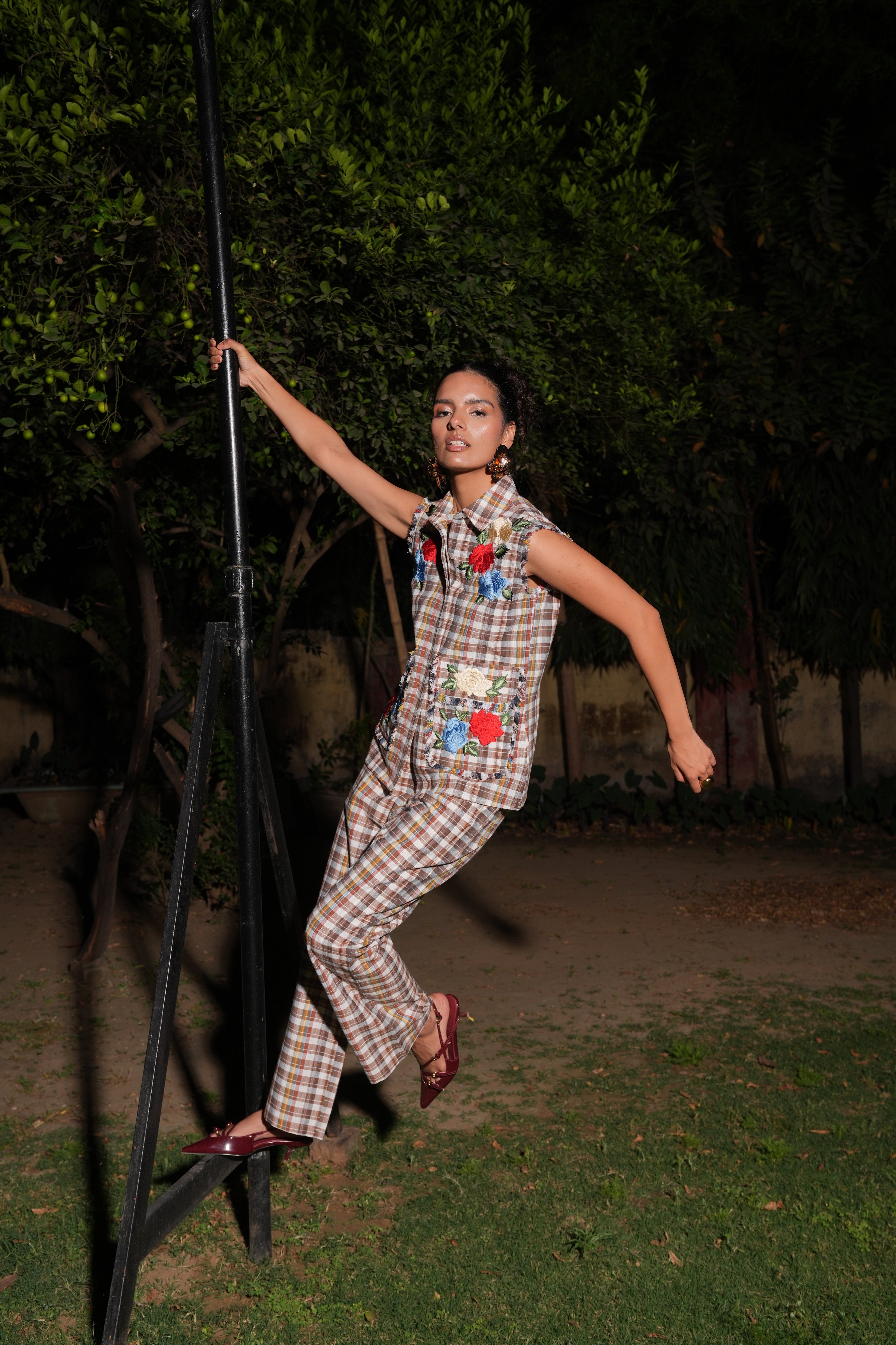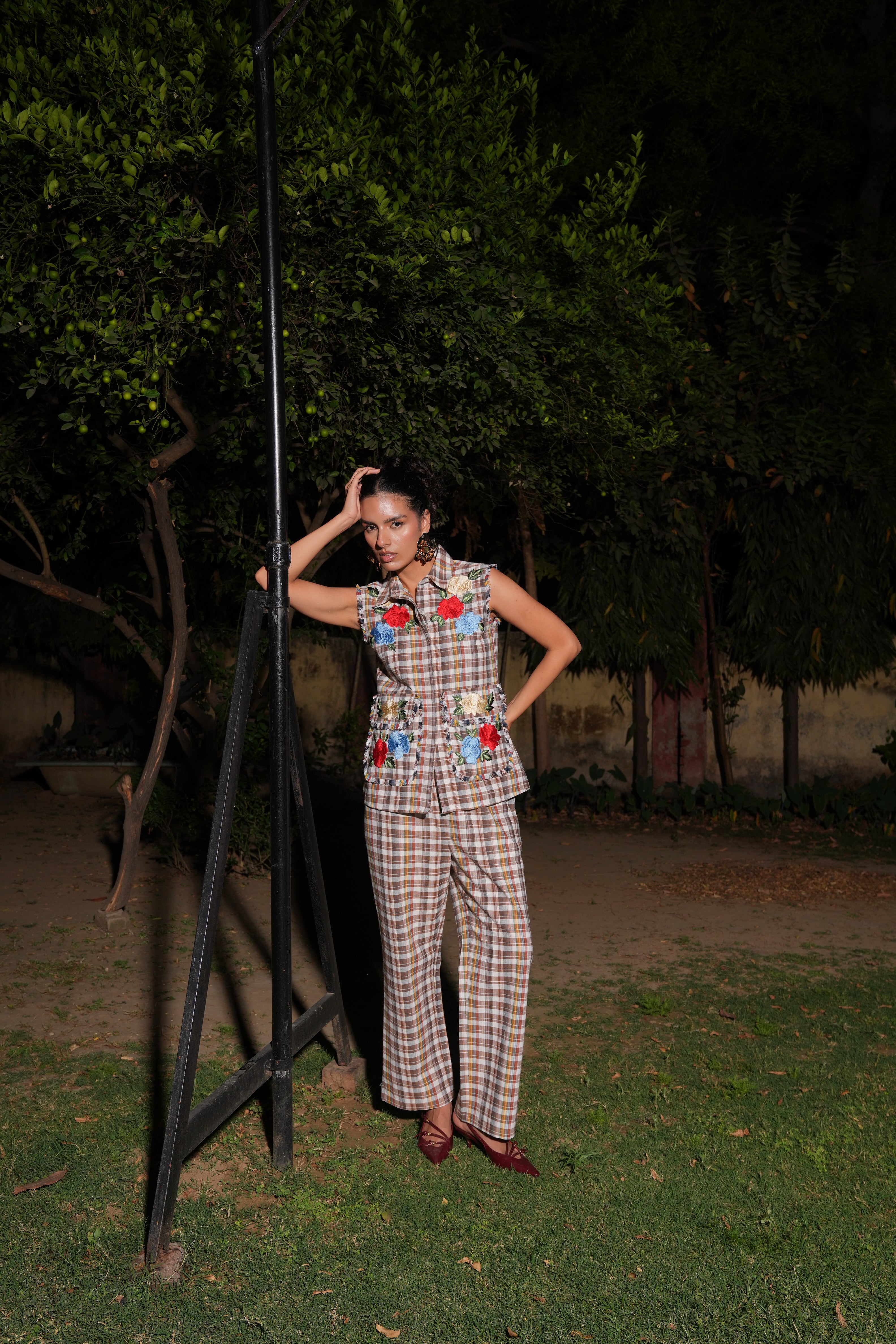 Embrace a polished aesthetic with this brown checkered co-ord set — a timeless piece with a modern twist:
